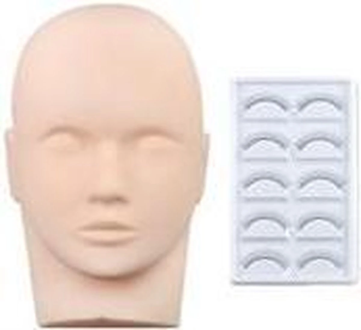 Oefenhoofd speciaal geschikt voor het oefenen van het plaatsen van wimperextensions inclusief 10 stuks gratis plakwimpers.