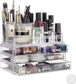 Relaxdays Make-up Organizer – Tweedelig – Cosmetica Opbergdoos – Transparant