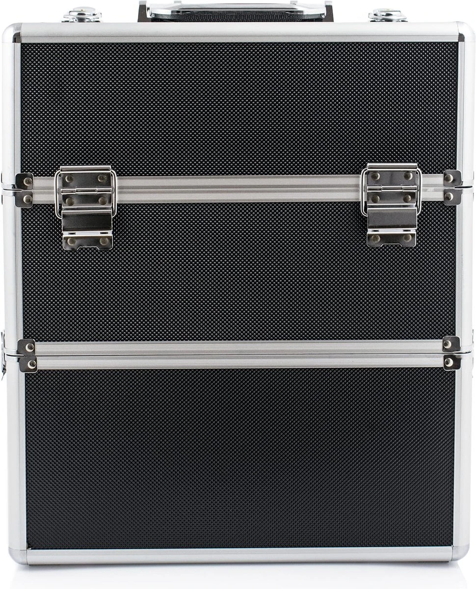 Een functionele en aantrekkelijke beauty make up koffer Robuust Zwart XXL, perfect voor nagelstylisten, schoonheidsspecialisten, visagisten die in het veld werken of voor het opbergen van cosmetica thuis.