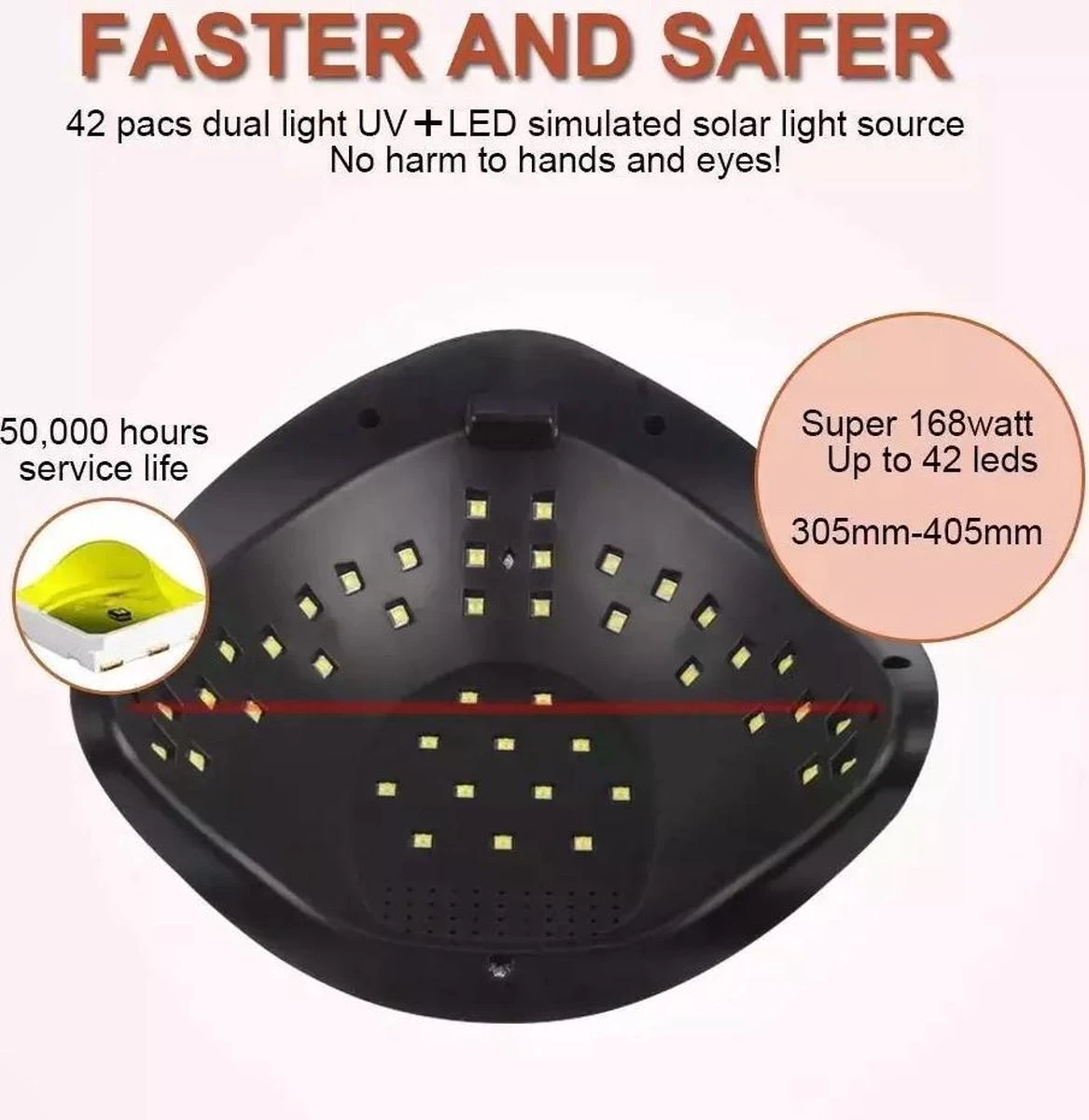 UV Nagel Lamp 168 Watt + 5 Gratis Vijlen – BellaLine – UV Led Nagellamp – Gel Nagel – Nagellak UV – Nageldroger – Salon – Sensor – Gellac – Acryl – Gelnagels – 42 Power Led – Professioneel – Krachtig – Manicure – Extra Lang Snoer – Pink – Pedicure